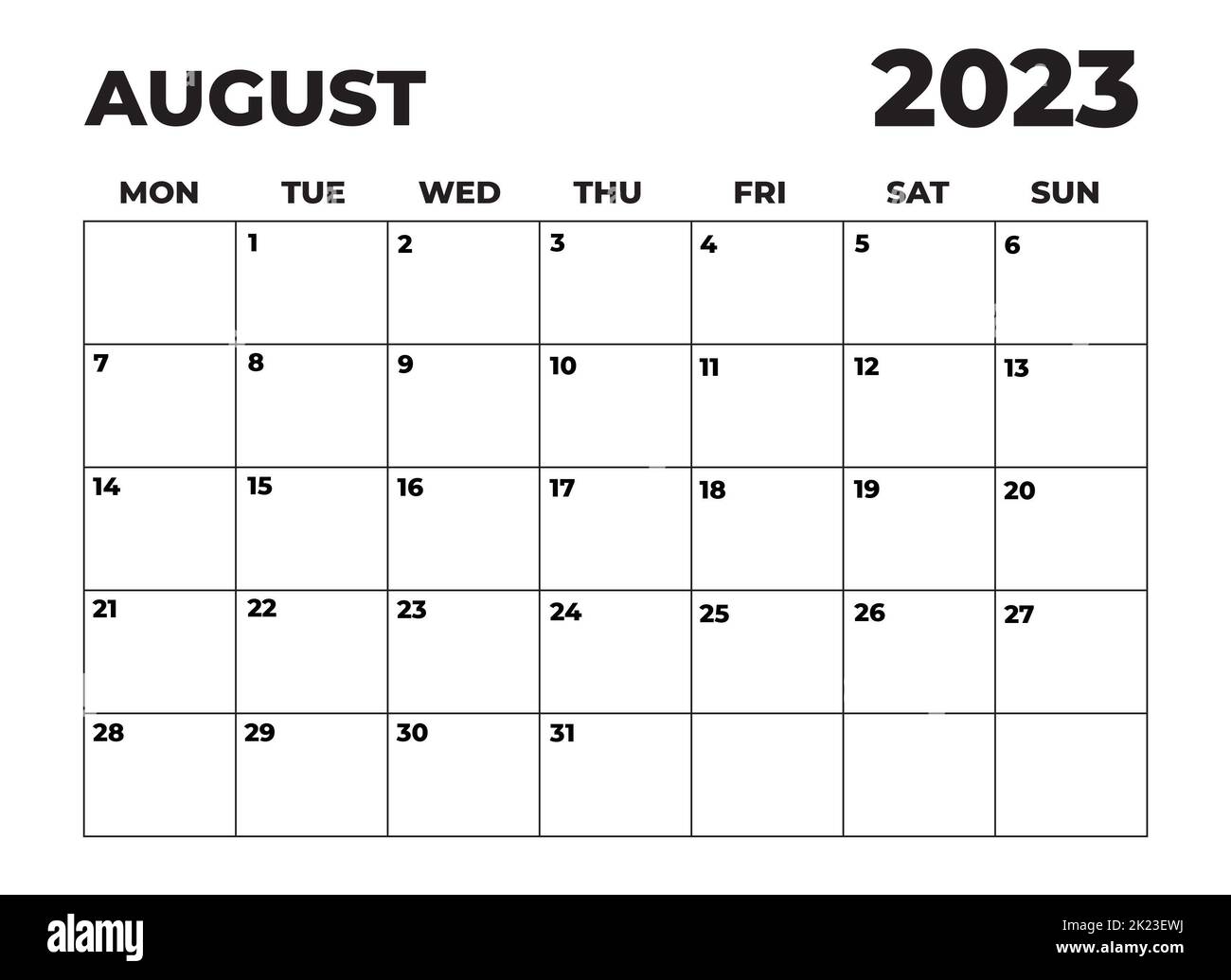 August 2023 Black and White Monday Start Landscaped Monthly